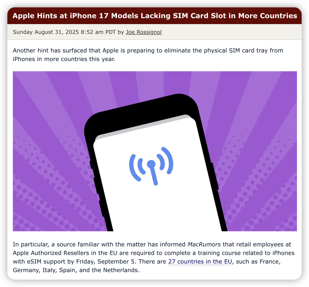iPhone 17「实锤」eSIM 稳了