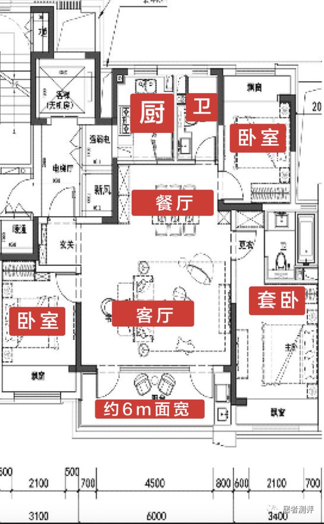 这个面积段只做三房是比较奢侈的,牺牲了一个房间,做大了公共空间,可以看到,客厅也有约6米的面宽,还不包括独立的餐厅,整体空间感是在线的。